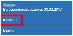 Для перехода в личный кабинет, требуется левой кнопкой мыши нажать на ссылку «Кабинет»: