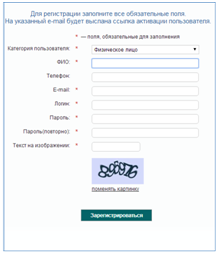 Если Вы не регистрировались ранее, то следует нажать кнопку «Регистрация» и заполнить регистрационную форму, представленную, ниже, затем нажать кнопку «Зарегистрироваться»:
