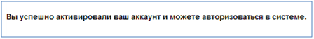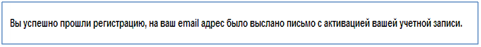 После нажатия на кнопку «Зарегистрироваться», если регистрация пройдена успешно и поля формы заполнены верно, отобразится сообщение: