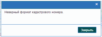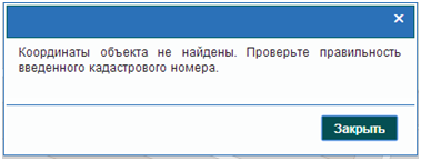 В случае ввода неверного кадастрового номера отразится соответствующее сообщение.