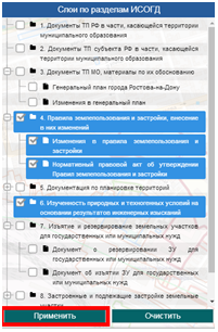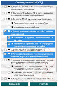 4. включение/отключение слоев по разделам ИСОГД.