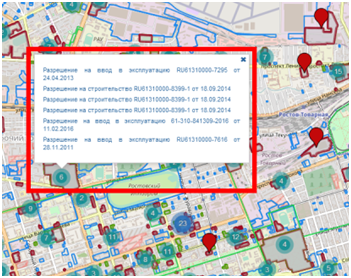 Для отключения отображения информации, нужно повторно нажать на соответствующую кнопку «Информация о разрешениях на строительство» или «Информация о разрешениях на ввод».